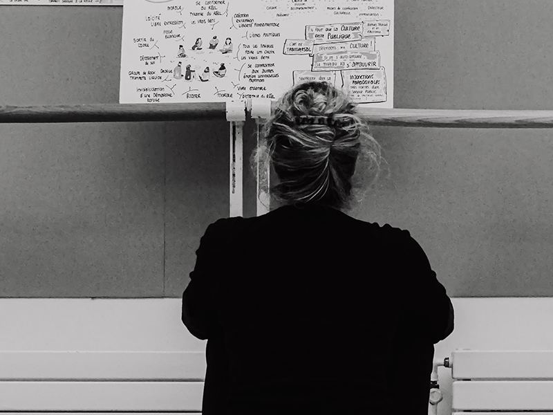 La journée se clôture par un temps d’échanges informels sur la journée. Nous prenons le temps de découvrir les illustrations de Cindy Remy, facilitatrice graphique, présente lors des ateliers.