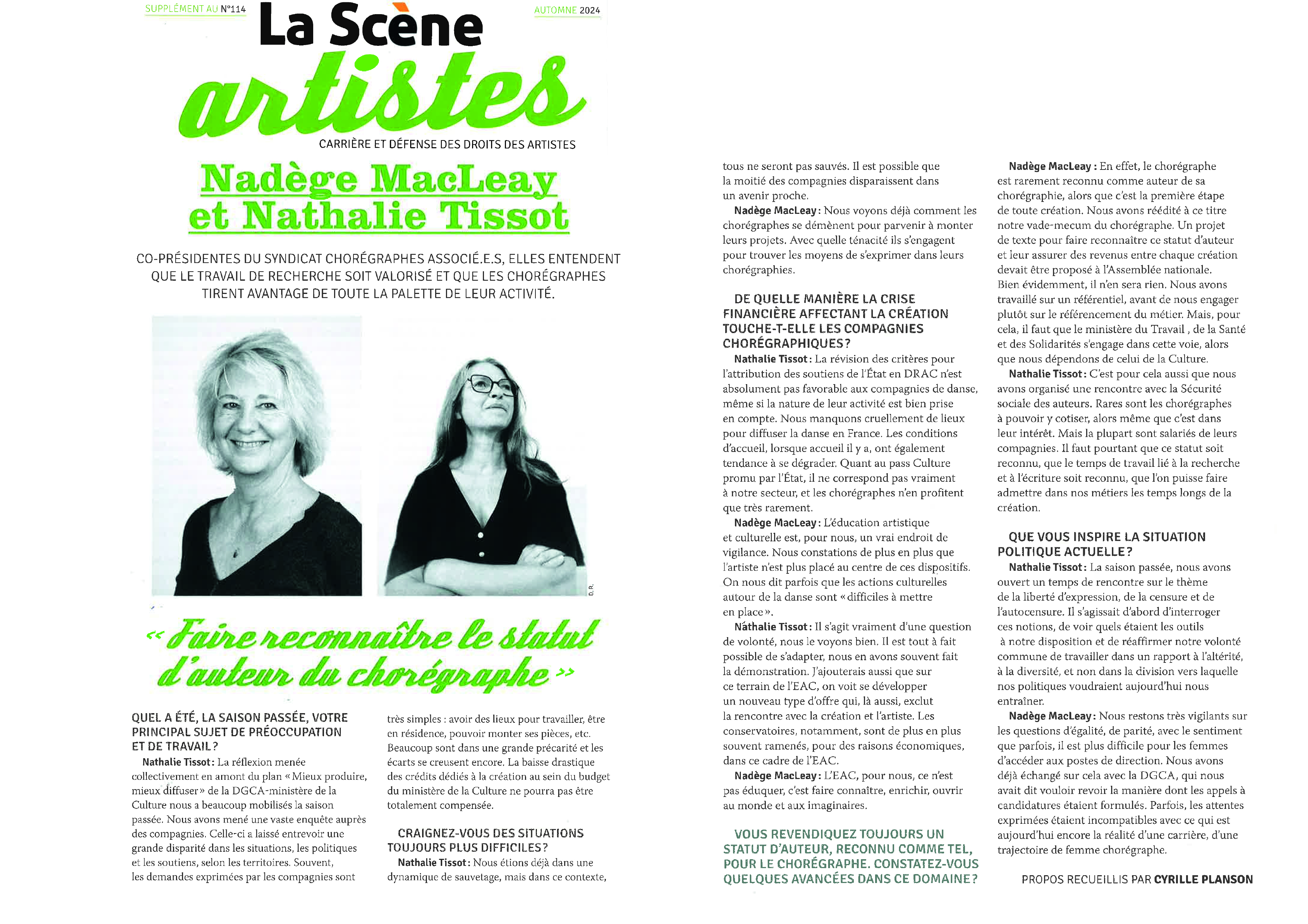 Entretien de Nadège MacLeay et Nathalie Tissot, coprésidentes par Cyrille Planson @La Scène